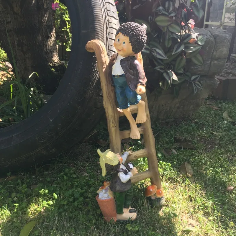 ORIGINAL Outdoor Garden Resin Figurines Decor Climbing Ladder Boy Dwarfs Sculpture Decoration Villa Courtyar