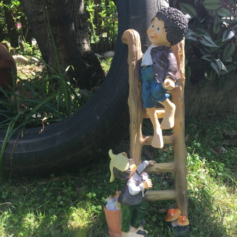 HIGH QUALITY Outdoor Garden Resin Figurines Decor Climbing Ladder Boy Dwarfs Sculpture Decoration Villa Courtyar