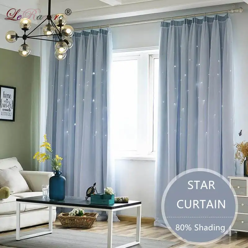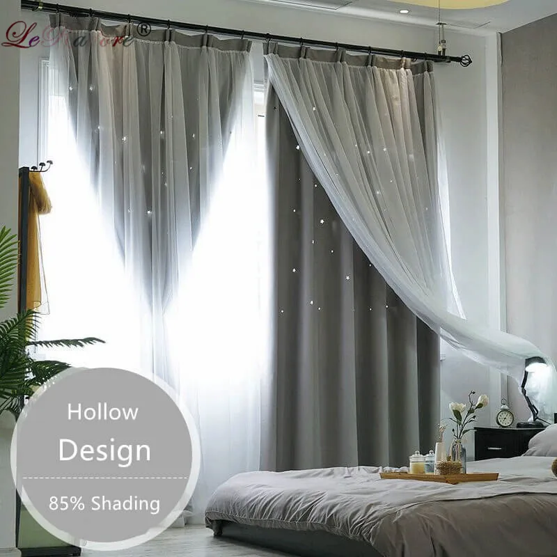 LeRadore Custom Modern Hollow Star 80-85% Blackout Curtain for Living Room Bedroom Curtains Faux Li