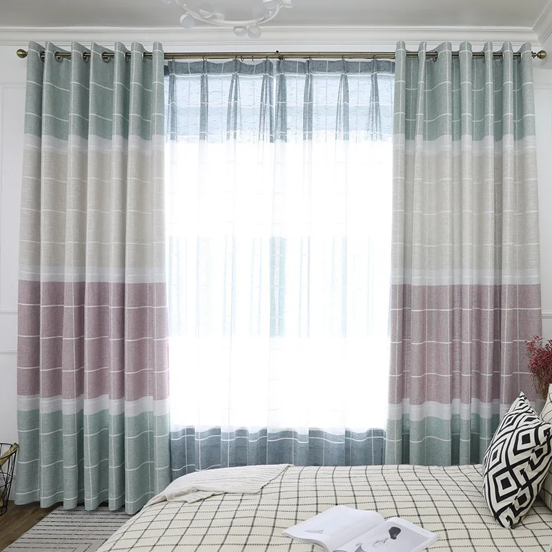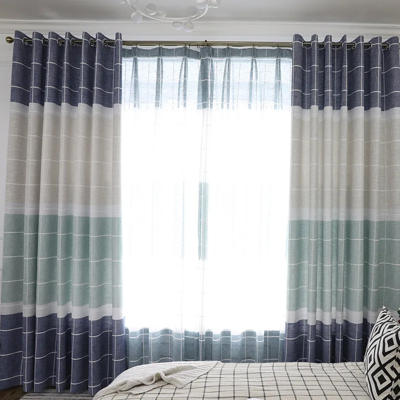 Nordic Modern Stitching Cotton Linen Plaid Blackout Curtains Cloth For Bedroom Living Room Window S