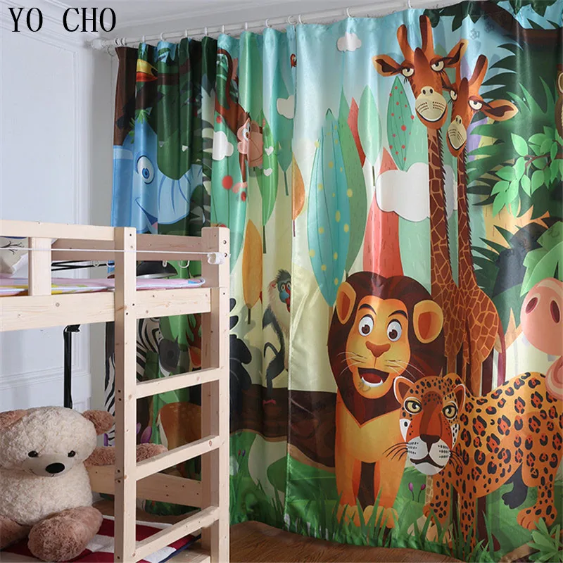 Best Quality YO CHO cartoon animals tiger lion deer window curtains for kids room European and American style li